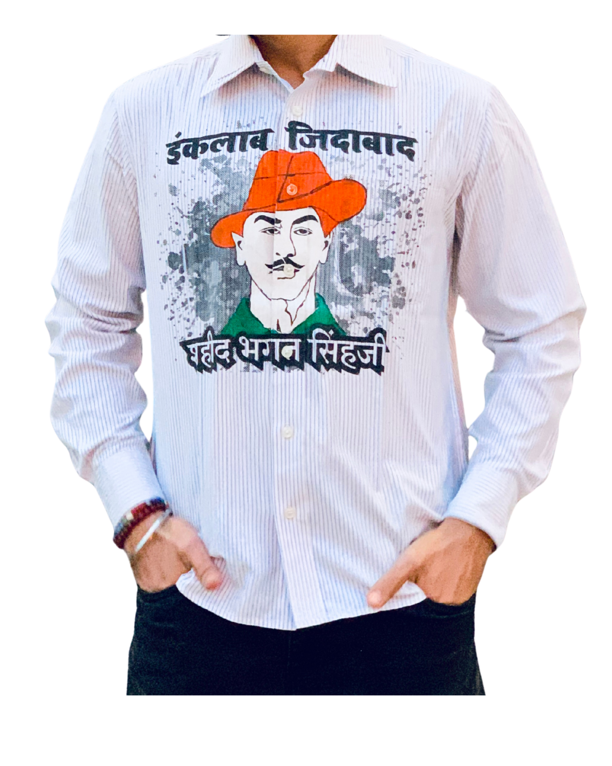 Inquilab Zindabad” Bhagat Singh White Printed Shirt