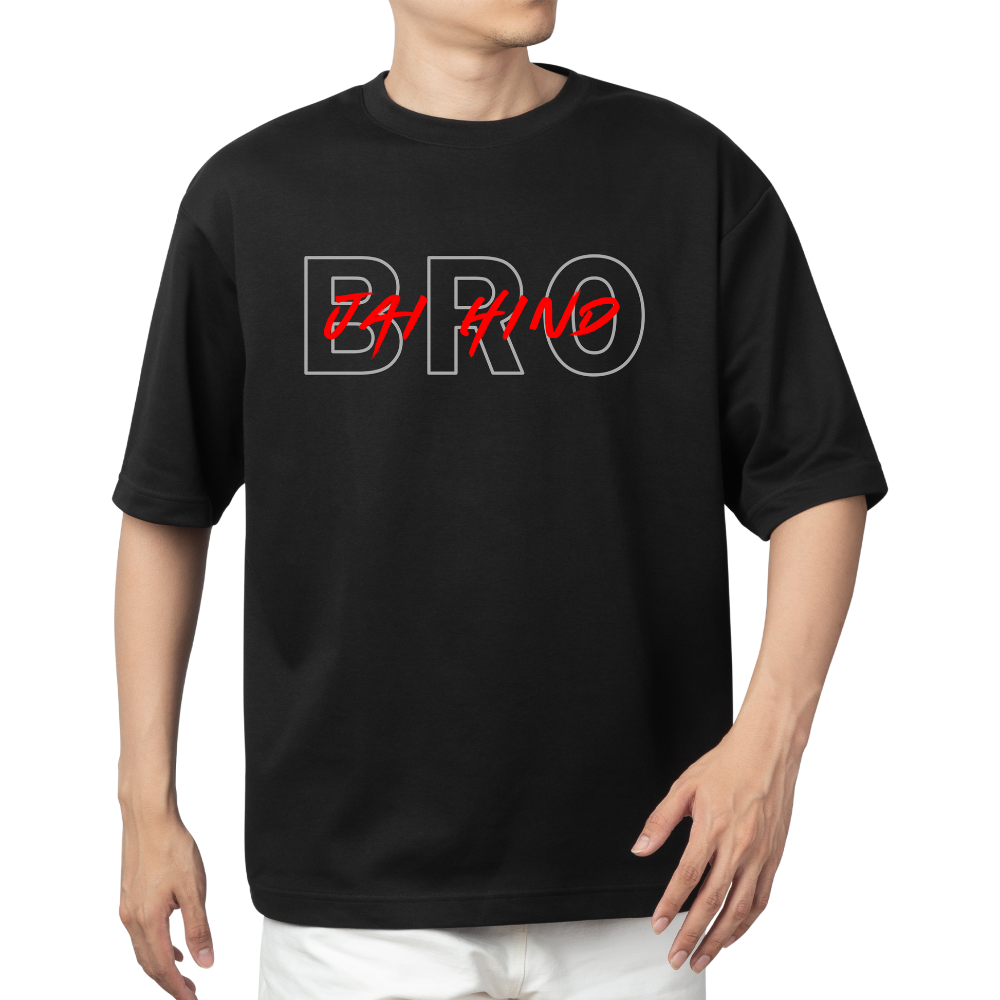 Crafted from a high-quality cotton blend, it offers breathability and all-day comfort while maintaining durability. The front features a striking BRO outline graphic in white, overlaid with a bold red handwritten JAI HIND, symbolizing strength, unity, and brotherhood.
